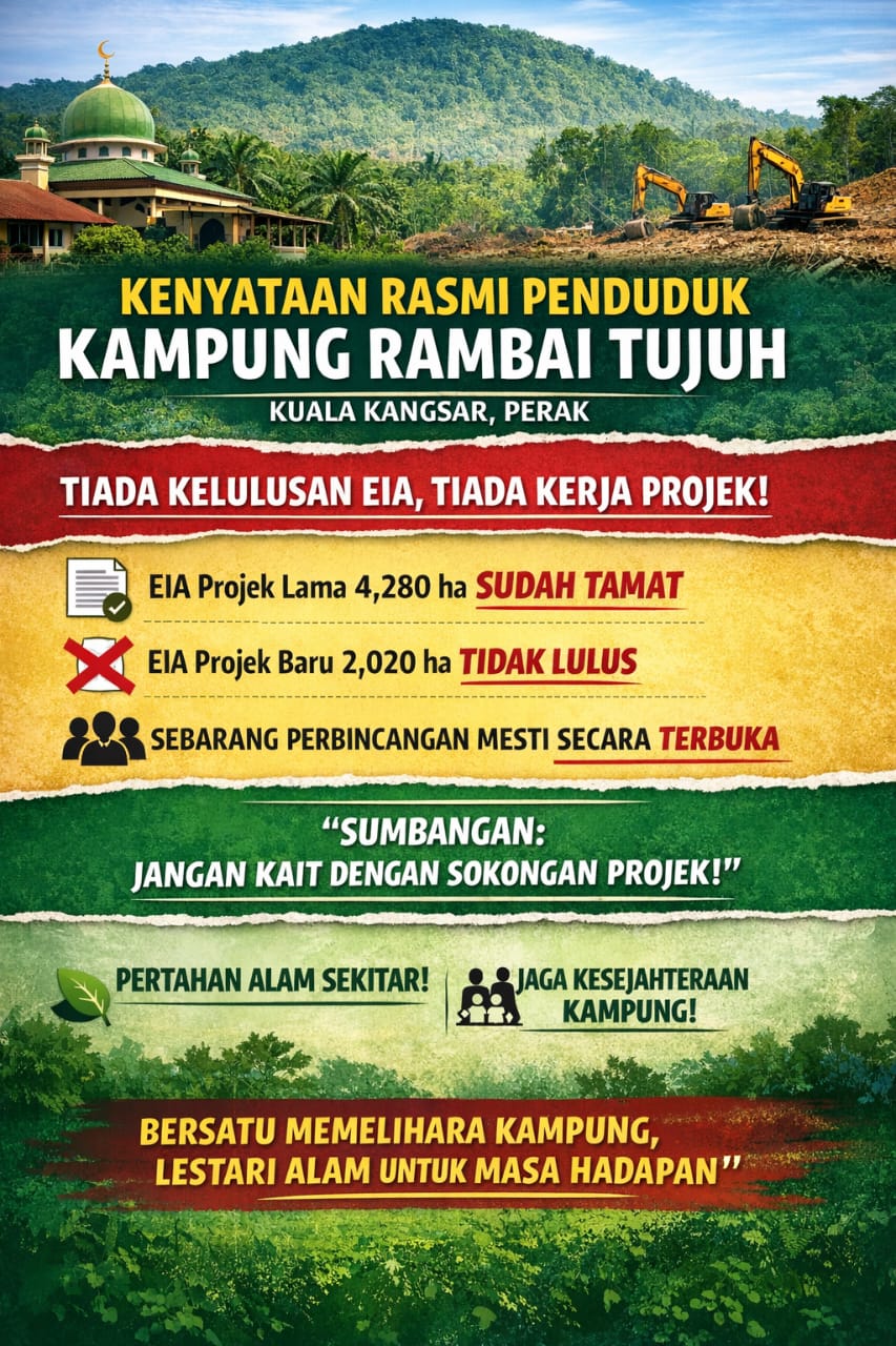 Chairman of the Kampung Rambai Tujuh Residents’ Action Committee, Dailami Zahari, said the community is aware that the Environmental Impact Assessment (EIA) report for a previous project covering approximately 4,280 hectares had expired in July last year.