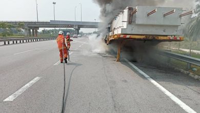 By Aida Aziz Photo: Bomba Perak BAGAN SERAI: A trailer carrying a load of reinforced concrete was destroyed by fire…