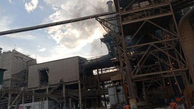 The conveyor belt in the track carrying garbage in the cement factory was destroyed by fire