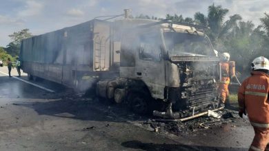 By: Aida Aziz MUALLIM: A trailer loaded with ceiling plaster was destroyed in a fire incident at Kilometer (km) 375.8…