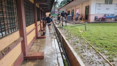 Ipoh Fire Department Members Clean Up SK Kepayang After Flash Floods