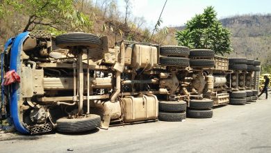 Man Injured as Flour-Laden Trailer Overturns on North-South Highway