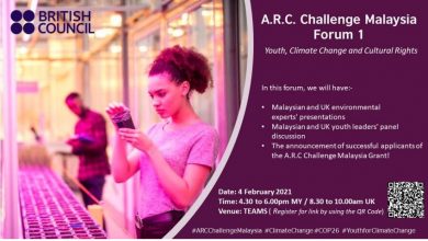 The British Council in Malaysia is pleased to invite you to the A.R.C Challenge Malaysia Forum 1 on Youth, Climate…